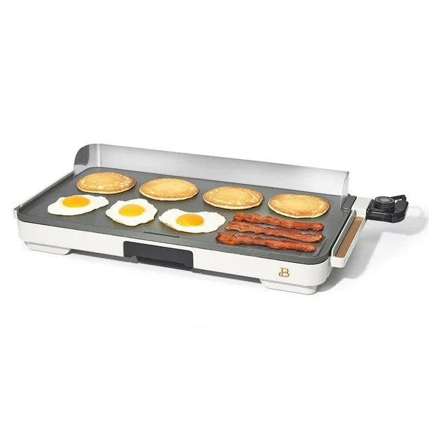 Pancakes and eggs for breakfast, grilled cheese for lunch or burgers and dogs for dinner! The Beautiful™ 12”x22” Extra Large Electric Griddle offers a family-sized cooking surface allowing you to make up to 15 pancakes or eggs at once. Thoughtfully designed for easy cabinet storage and our signature gold accents, the Beautiful™ 12”x22” XL Electric Griddle is made for your kitchen and your lifestyle. Created by Drew Barrymore, Beautiful Kitchenware™ combines elegant design, contemporary colors and modern silhouettes for high-performance appliances that looks beautiful on your kitchen counter.