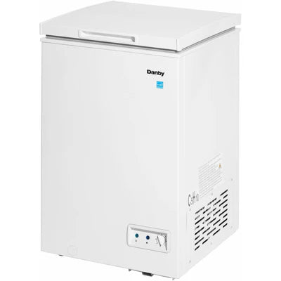The Danby 3.5 cu. ft. chest freezer is a compact and dependable solution for extra frozen food storage in your home, garage, cottage, or basement. Its space-saving design makes it ideal for smaller areas while still offering plenty of room for meats, frozen meals, and bulk grocery items.