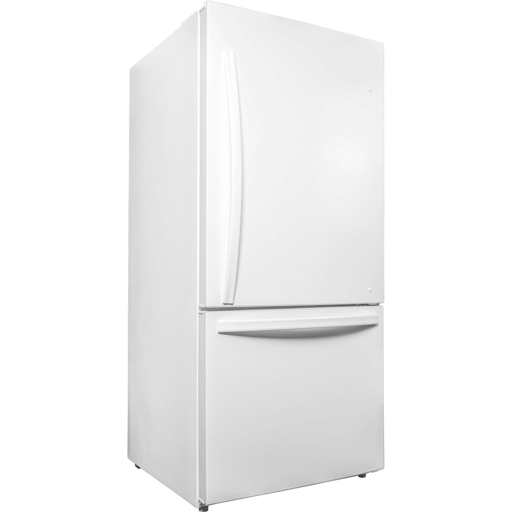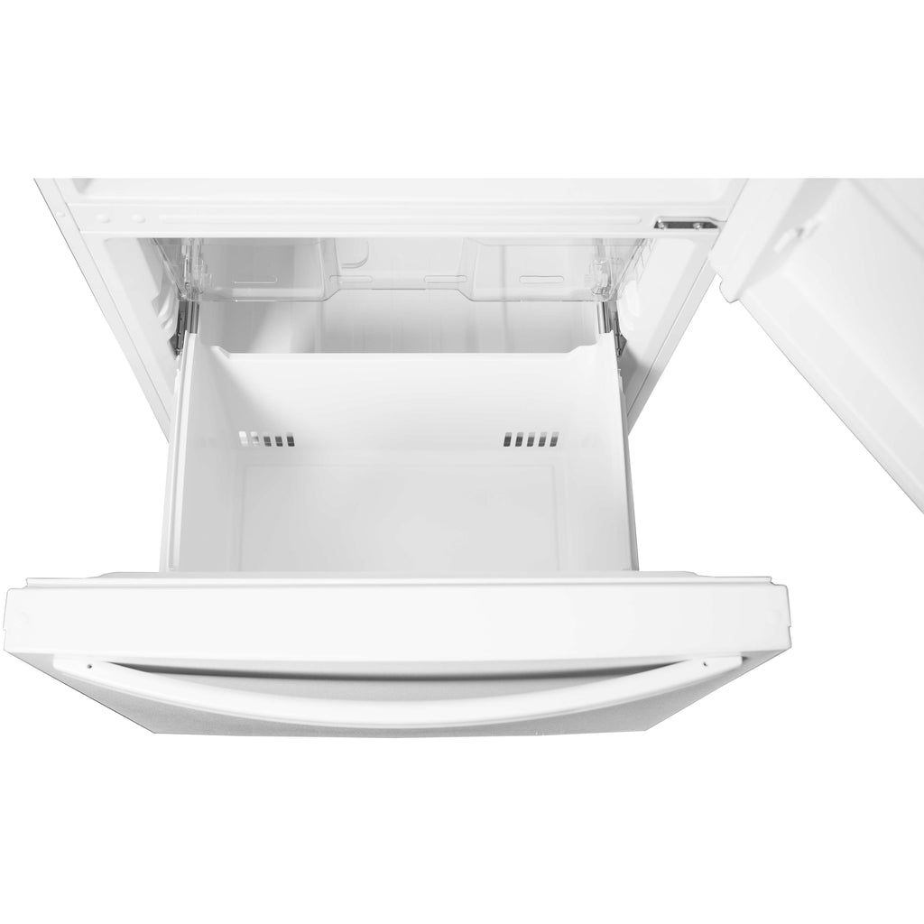 You’ll never have to worry about cooling space again with this 18.7 cubic foot bottom-mount refrigerator from Danby. The crisp white exterior blends seamlessly with any décor and the interior of the fridge and freezer is illuminated by bright white LED lights that make it easy to locate all your favorite food items. Built to be dependable, the electronic thermostat is located front and center and this model features frost-free fan forced cooling which ensures an even temperature throughout. Designed with versatility in mind, it is equipped with 2 adjustable glass shelves, 1 full and 3 half door shelves, 2 clear crisper drawers, and the fridge door can be adjusted for left or right-hand opening due to the smart reversible-hinge design. Additionally, the freezer compartment consists of 2 pull out drawers.