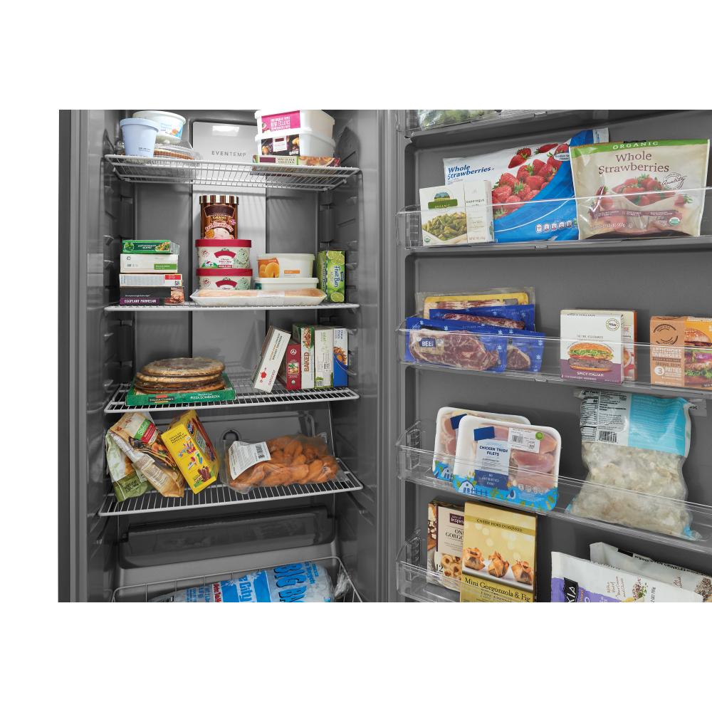 Easily organize your family's frozen favorites with the four adjustable, metallic wire shelves, deep bottom basket, and five spacious door bins that allow you to make the most of every available square inch of your freezer.