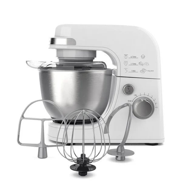 - Provides mixing versatility - dough hook, whisk & flat beater included