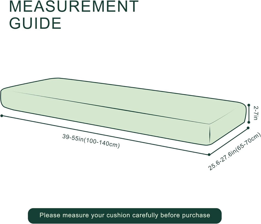 - SIZE GUIDE: 1 PC included. Fit a cushion with 40-50" in length, 20-27.5"in width, 2-7" in height. With great elasticity, fits for more than 90% cushion. Wider size application due to the elasticity and the stretchy band we have on the bottom.