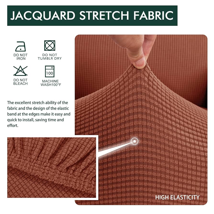 - FINE MATERIAL: 85% polyester and 15% spandex. Soft, breathable, and durable, meanwhile remains the high stretch-ability. The jacquard fabric is crease resistant, so the cushion cover will stay in shape no matter how you sit or wash it.