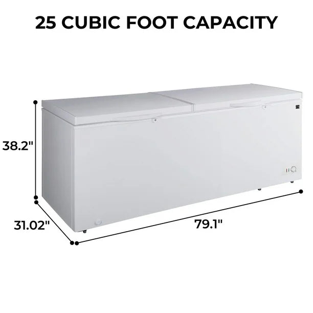 Designed to convert easily from fridge to freezer and back, the Kenmore 25 cu.ft. convertible chest freezer/fridge easily accommodates your food storage needs, for fresh or frozen foods, and has an Energy Star rating to help keep your electricity bills down. Store more and optimize bulk food storage. Dual doors and storage baskets let you easily access and organize your food, and bright LED interior lights make it easy to see what’s inside.
