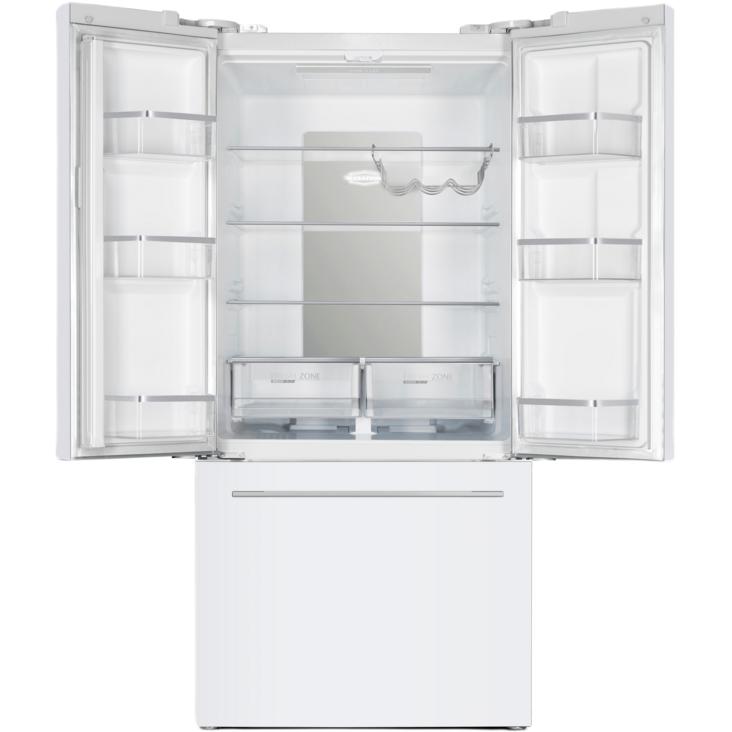 Introducing the Marathon 20.8 cu.ft. French door refrigerator – where style and functionality seamlessly come together. Equipped with a high-performing and quiet Inverter compressor, this EnergyStar certified fridge ensures even cooling and maintains optimal freshness through its multi-air-flow frost-free operation. Elevating its premium design, this appliance features a backlit interior logo and stainless steel trim on shelves, crispers, and door bins, adding a touch of sophistication. Complete with a spacious pull-out freezer drawer, a bright LED light, three easy-to-clean tempered glass shelves with an optional three-bottle hanging wine rack, twin humidity-controlled crispers, and ample door storage – this refrigerator truly has it all! Every Marathon Appliance is "Engineered to Perform" and is supported by the industry's leading 2-year parts and labor warranty