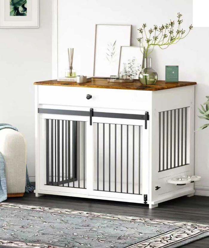 - 【Large Storage Space】Our dog crate features a spacious countertop where you can display photo frames, vases, books, and other decorative items. The roomy drawer underneath provide ample space to store dog food, toys, and other pet supplies, keeping everything organized and within reach.
