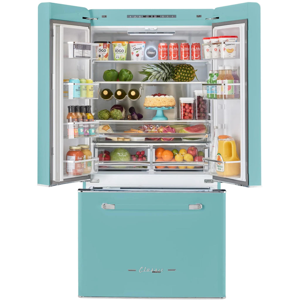 The 21.4 cu.ft. French door refrigerator, a stylish and energy-efficient addition to your kitchen! This refrigerator not only boasts a generous storage capacity but is also Energy Star certified. Say goodbye to tedious defrosting with its frost-free design, allowing you to enjoy a hassle-free experience while maintaining the freshness of your groceries. The family-sized design prioritizes convenience with adjustable shelves and ample door storage, accommodating the diverse needs of a busy household.