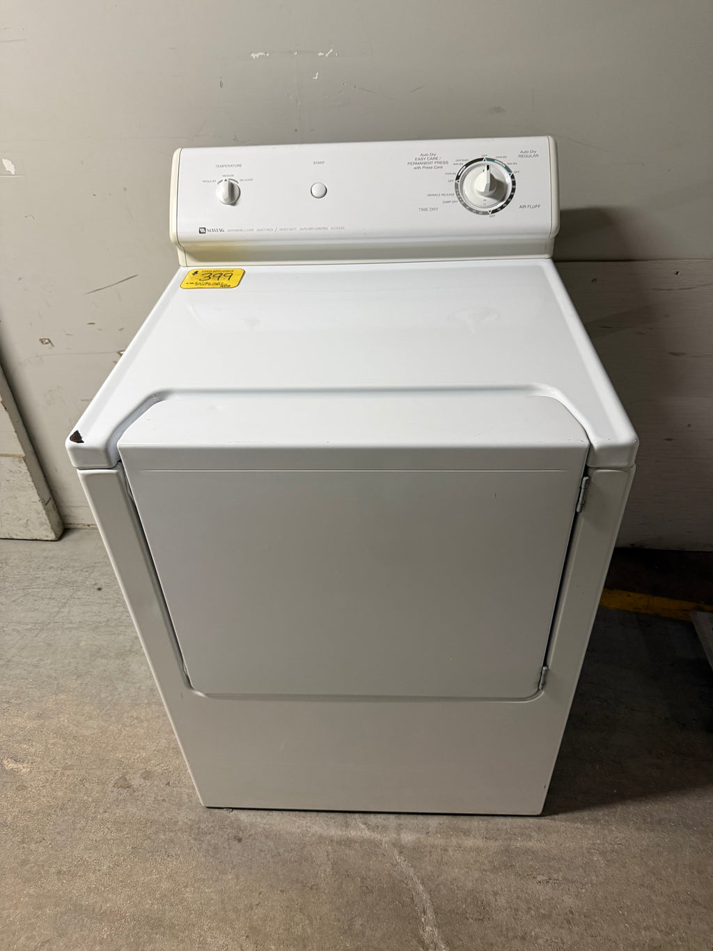 Used white Maytag freestanding vented natural gas dryer. Can only be natural gas. Can not be converted to propane.