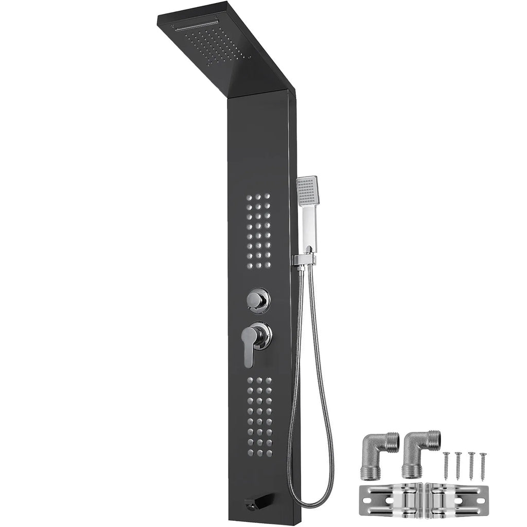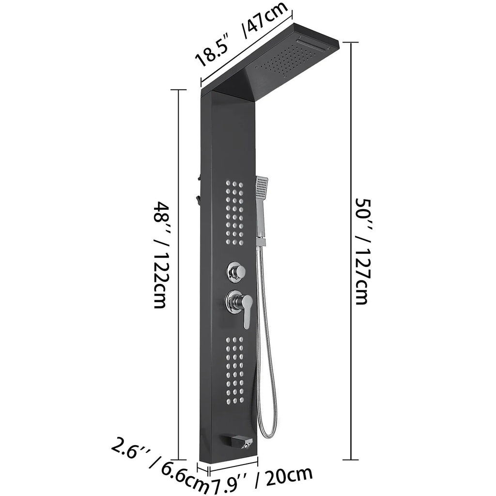 - Sturdy Stainless Steel Frame: Color: Black; Craft: Polishing; The 304 stainless steel thickened panel, brass connectors, and explosion-proof hoses make this shower panel black heat-proof and leakage-proof to ensure superb quality. The classic surface is rust-proof, finger-proof, and easy to clean.