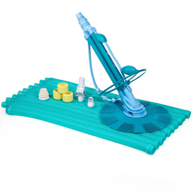 Deluxe automatic pool cleaner vacuum with a set of hoses included! This item is perfect for efficiently cleaning dirt, leaves, debris, bugs, pebbles, and short twigs from your pool; allowing you to spend more time in your swimming pool instead of cleaning it. No wheels or gears means no jamming, breaking, or otherwise interrupting the cleaning process. Thinking smarter, not harder, is the key to enjoying your backyard oasis worry-free this summer!